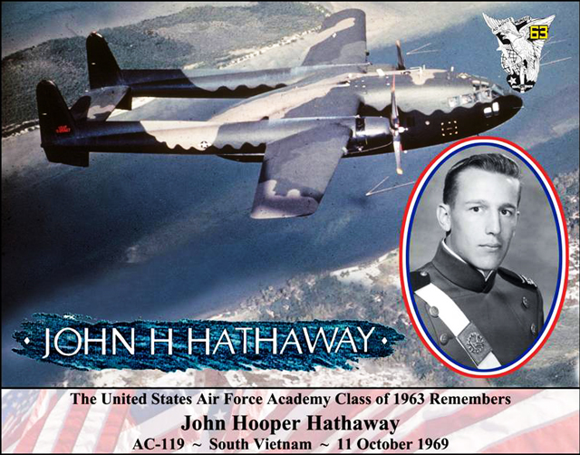 A press release about one of John's missions told of him and his crew coming to the rescue of a Vietnamese Army outpost in the Mekong delta. John was flying night patrol when the attack began. The outpost was surrounded when Shadow arrived, and John's crew drove off the attackers. Such likely were many of the missions John flew. On 11 October 1969, the left engine on John's AC-119G, Shadow 76, caught fire just as they were taking off. At slow speed on only one engine, there was hardly enough air flowing over the ailerons and rudders to keep the aircraft from rolling left. The aircraft crashed only 350 yards from the SW perimeter of the base. Three crewmen and a South Vietnamese airman survived, perhaps due to the final actions of the pilots to maintain some control of the crash. John was not one of the survivors.